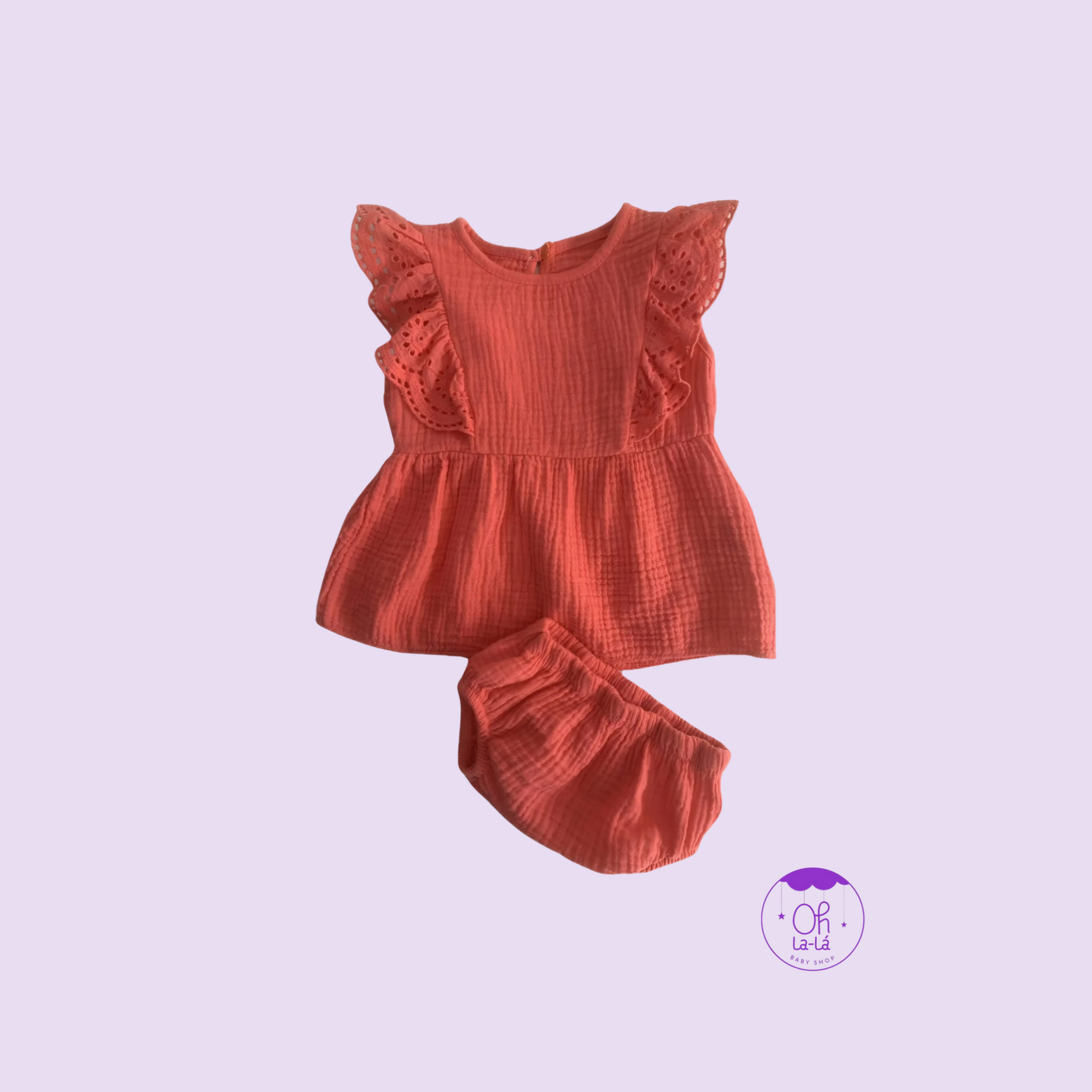 Jesusito coral con cubrepañal en muselina, tallas 3-36 meses