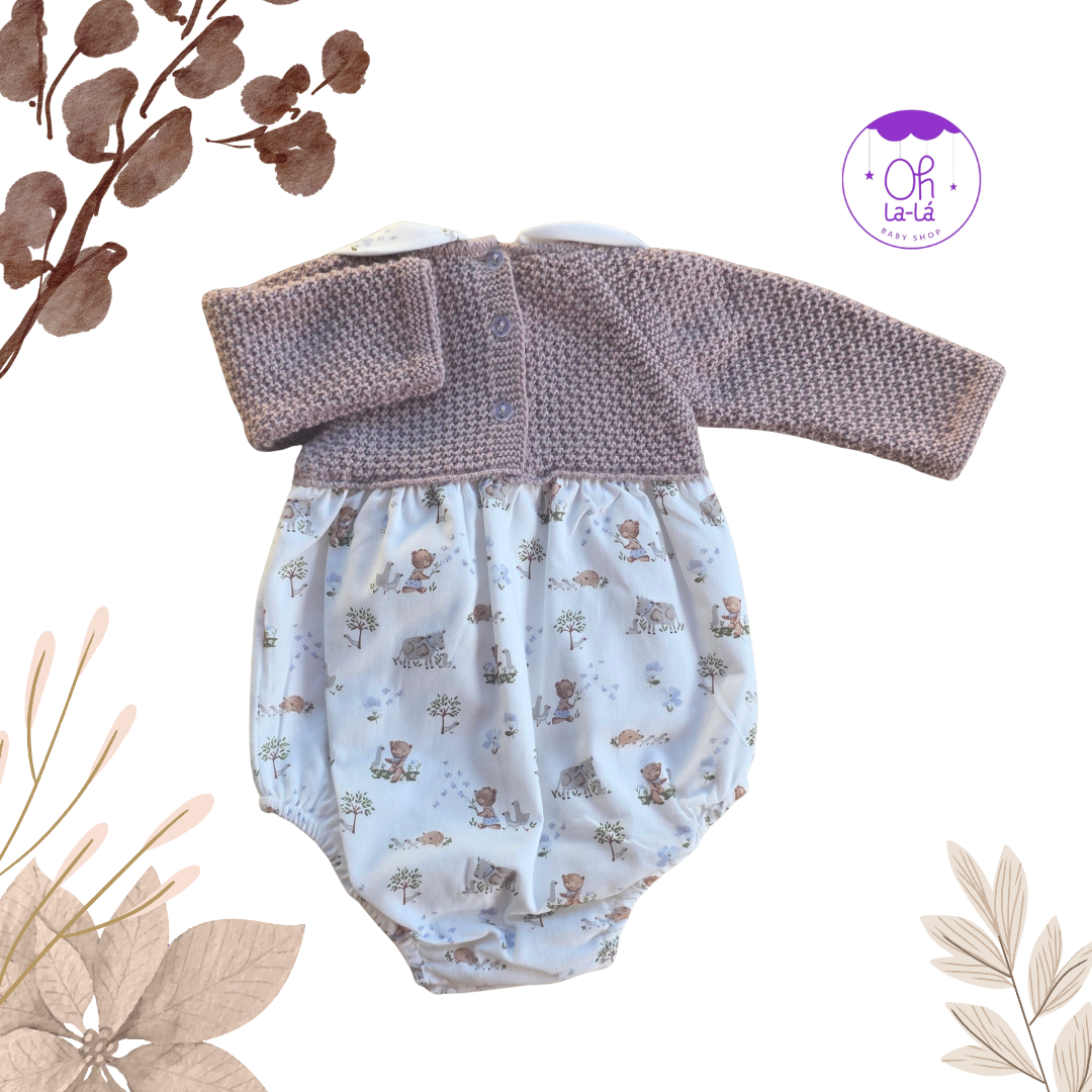 Pelele de lana y tela con estampado de animales | Abotonado